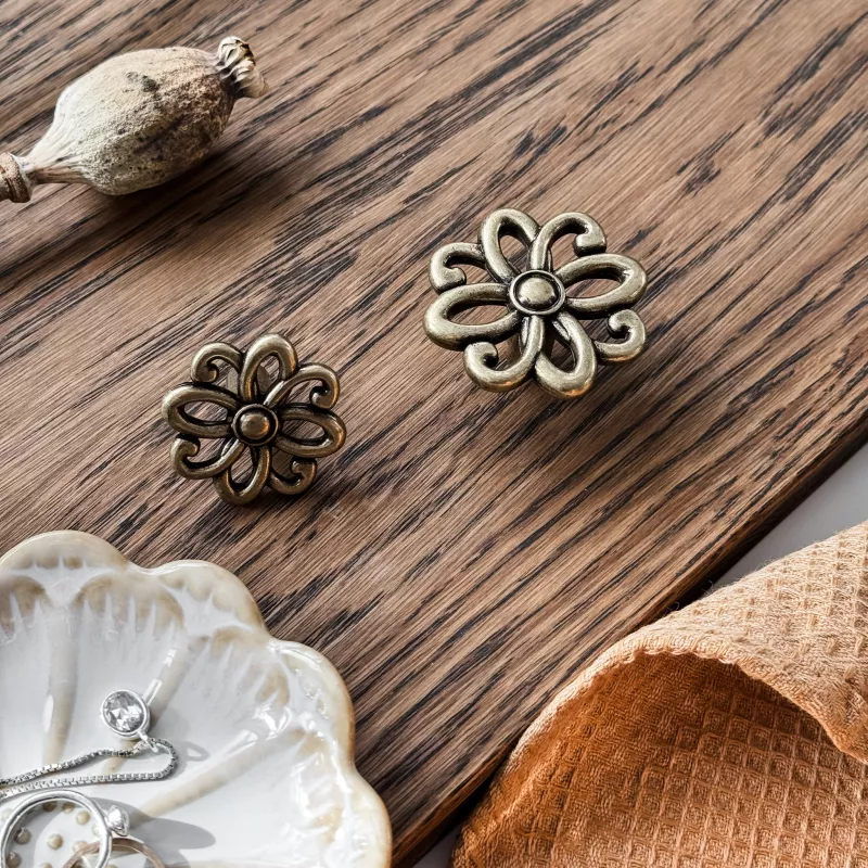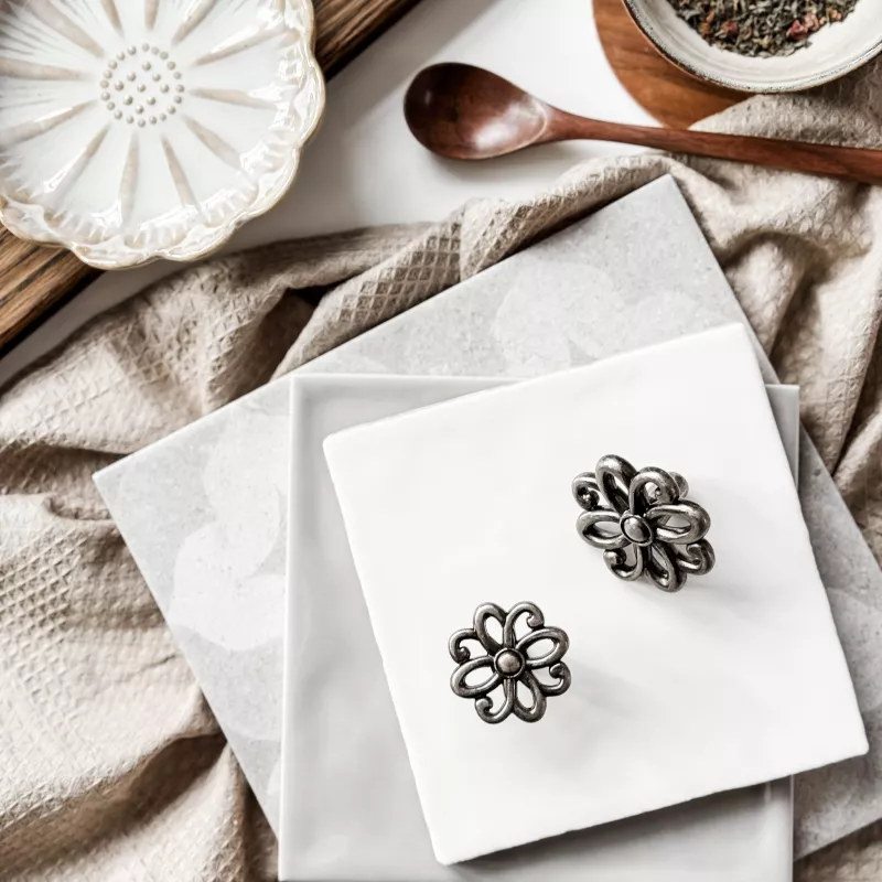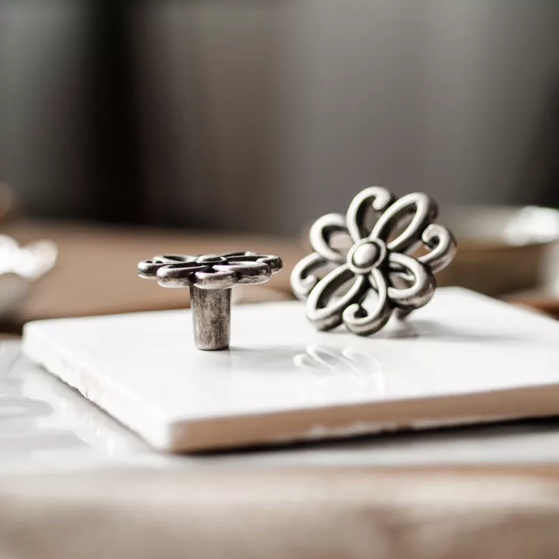 Marrakech-knoppen har en unik evne til at tilføre varme og personlighed til dine møbler. Med sit bløde, blomsterinspirerede formsprog og rustikke overflade skaber den en naturlig og afslappet stemning, perfekt til dig, der ønsker et indbydende hjem med boheme-charme. Denne knop har et design, der både føles klassisk og unikt. De bløde former og de dekorative detaljer minder om orientalsk håndværk, mens materialet og overfladen giver den et robust og rustikt udtryk. Den findes i to størrelser og to farver, hvilket gør den nem at tilpasse forskellige indretningsstile.