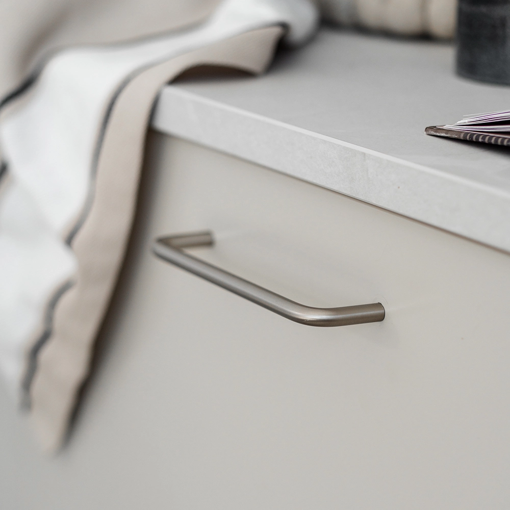 Håndtag 7353 er et udtryksfuldt eksempel på moderne minimalisme – et stilrent og diskret køkkenhåndtag, der giver høj funktionalitet. Med sin smalle profil, kun 7 mm i bredde, og buet tråddesign tilbyder det elegant, men stadig godt greb. Her i børstet nikkel, som efterligner rustfri look og passer perfekt sammen med rustfrie indretningsdetaljer og hvidevarer, hvilket giver et moderne og sofistikeret udtryk, der fungerer i både klassiske og moderne miljøer.