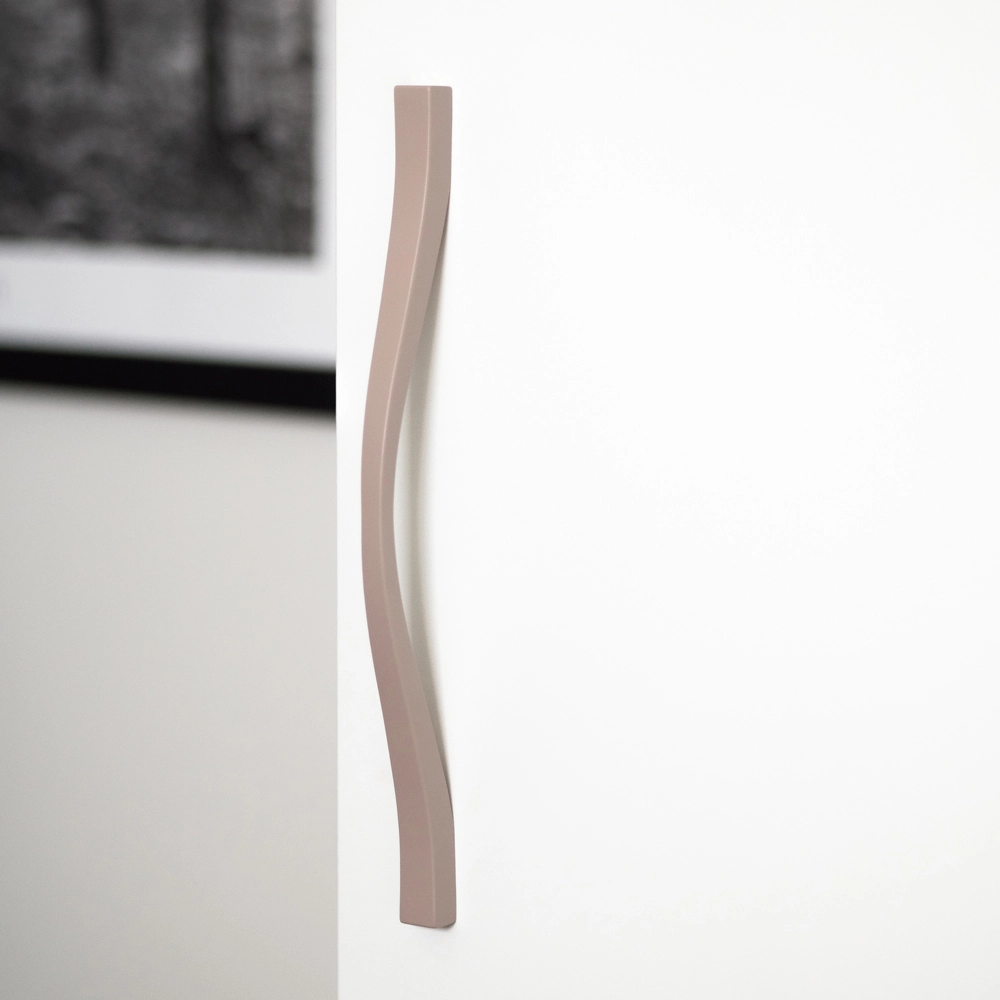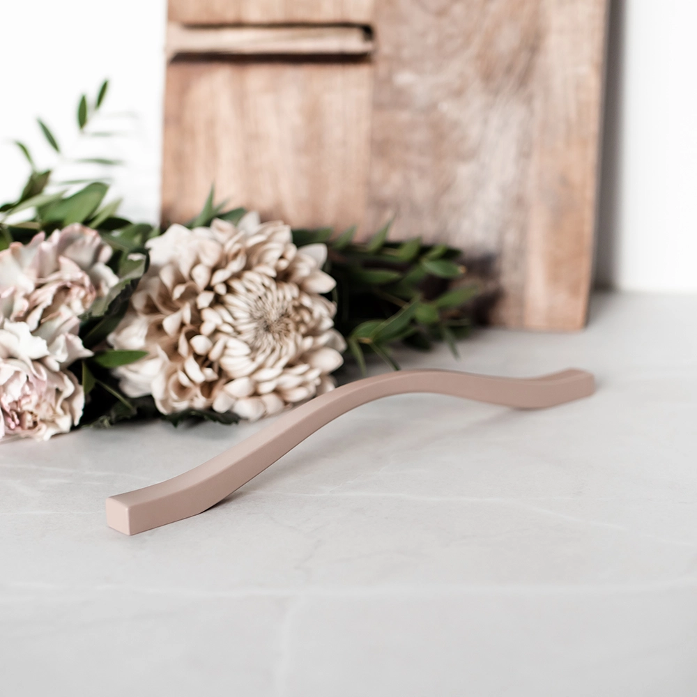 Flow køkkenhåndtag er et minimalistisk smalt greb, der bliver en stilren detalje på dine køkkenskabe, skuffer eller garderobedøre. Flow har et blødt design, der følger formen af en bølge mod skabene, og Flow er desuden udstyret med to cc-mål i ét greb, så de passer til flere forskellige køkkener. Flow i gammelrosa finish giver energi og varme til et rum. Vores greb med grå-rosa finish har farven NCS 3010-Y80R.
