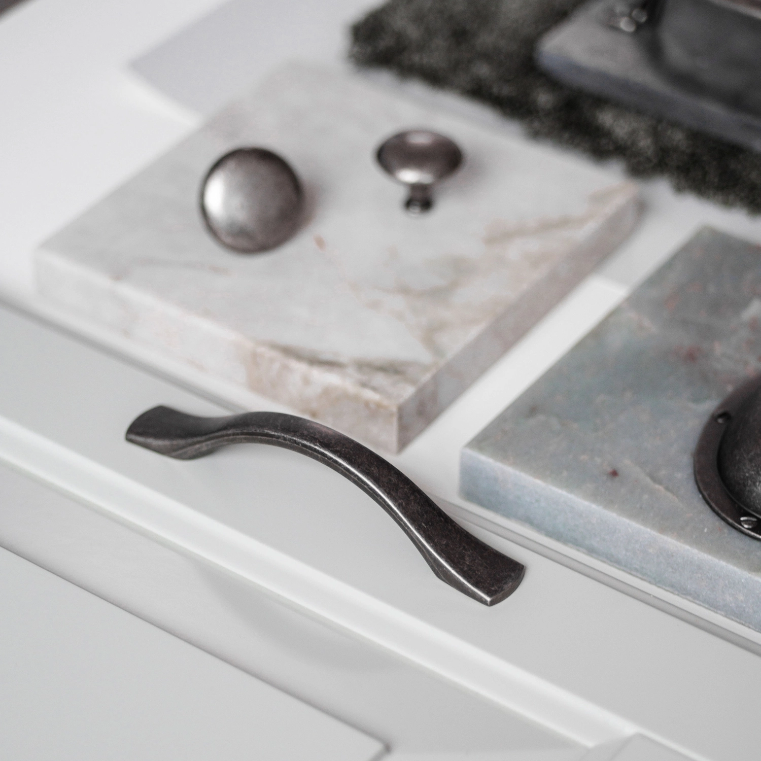 Et køkkenhåndtag i skandinavisk design med antikfarvet finish, der passer til mange moderne køkkener. Håndtaget har en blød bue, der gør det let at gribe fat i døren eller skuffen, samt brede fødder. Placer det selv i køkkenet eller match det med en af vores knopper i antik finish.