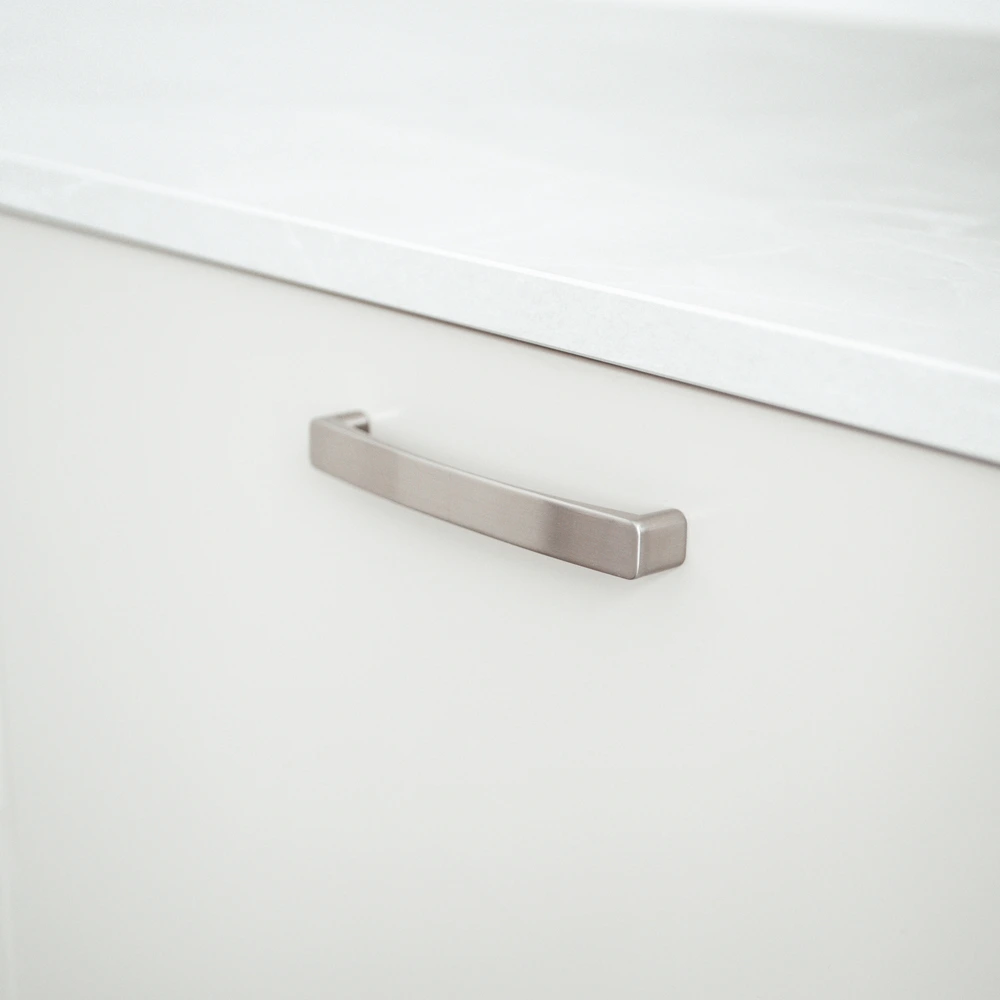 Køkkengreb i mat nikkel.