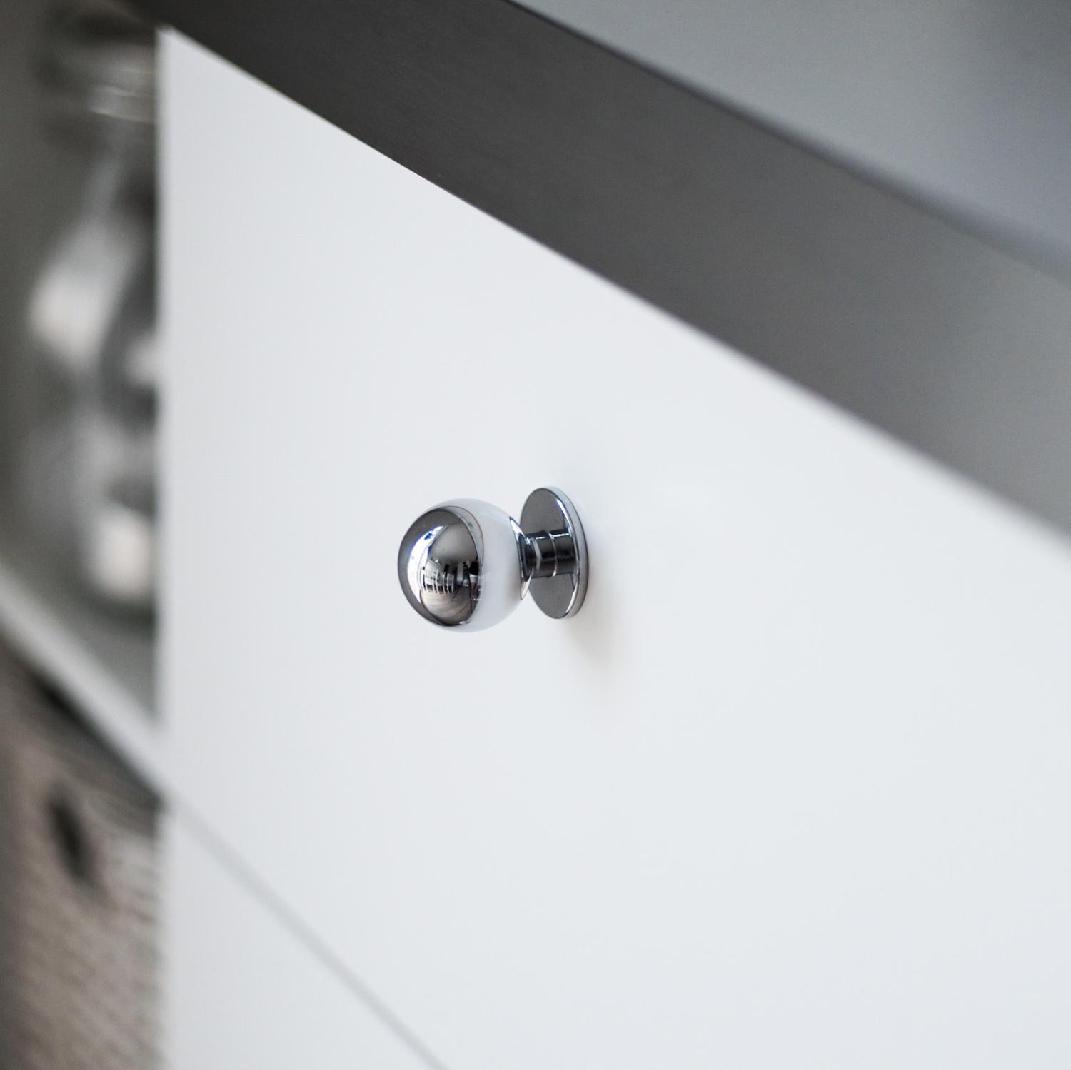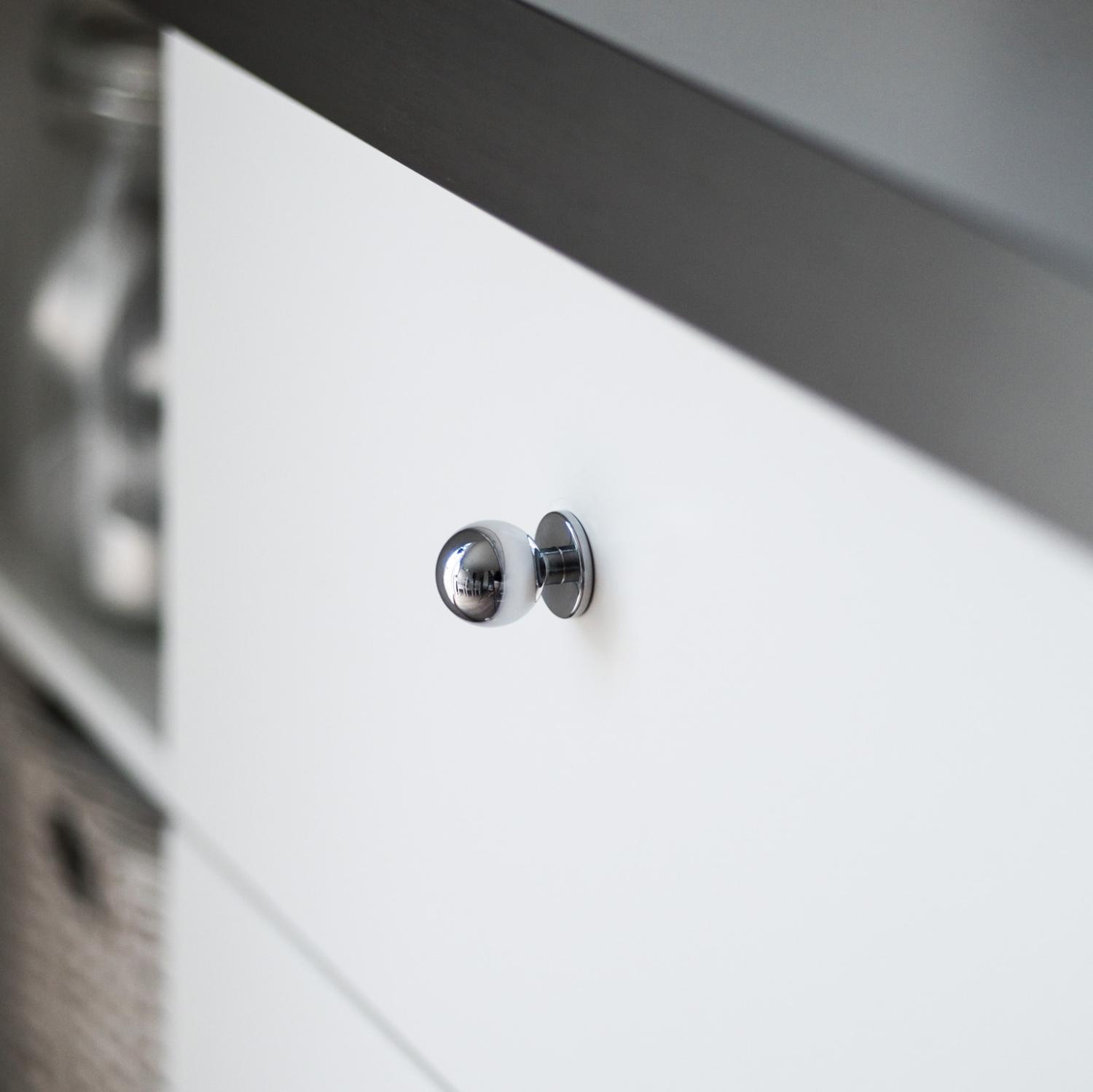 Knoppen Berg er vores mest populære køkkenknop, der passer til de fleste indretningsstile! Knoppen er helt massiv i metal og giver derfor en solid følelse, der holder i mange år! Berg er mest populær i køkkenet, men fungerer lige så godt på en kommode, et skab eller en skænk. Berg har et rundt, kugleformet greb og en flad fod, der kan være fordelagtig til at skjule mærker efter tidligere beslag. Vi tilbyder Berg i to forskellige størrelser!