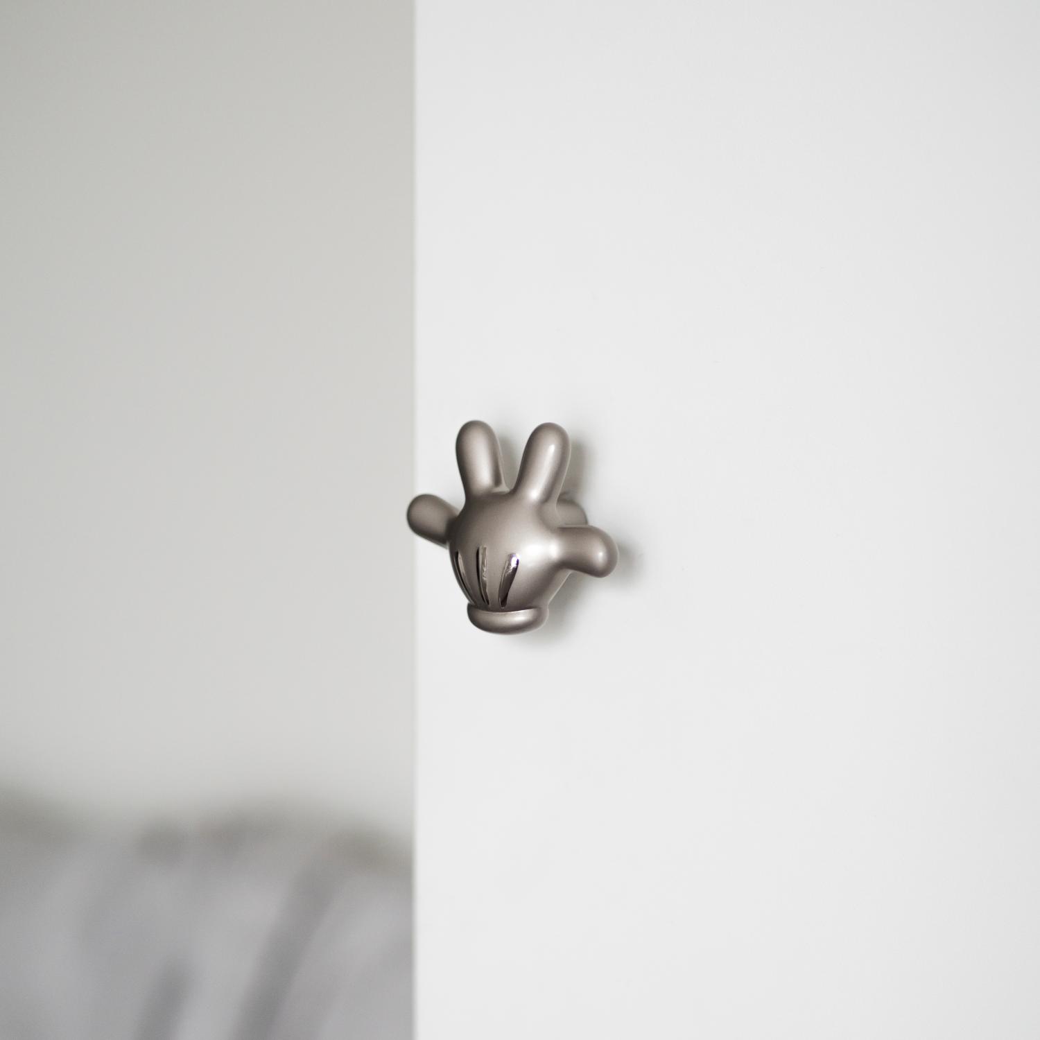 Knoppen Mickey Mouses Venstrehånd er en fin og detaljeret skuffeknop med Mickeys klassiske hånd. Disse eksklusive og smukke børneknopper er helt unikke og kan gøre en Ikea-kommode mere personlig eller være en fin detalje på natbordet i børneværelset.