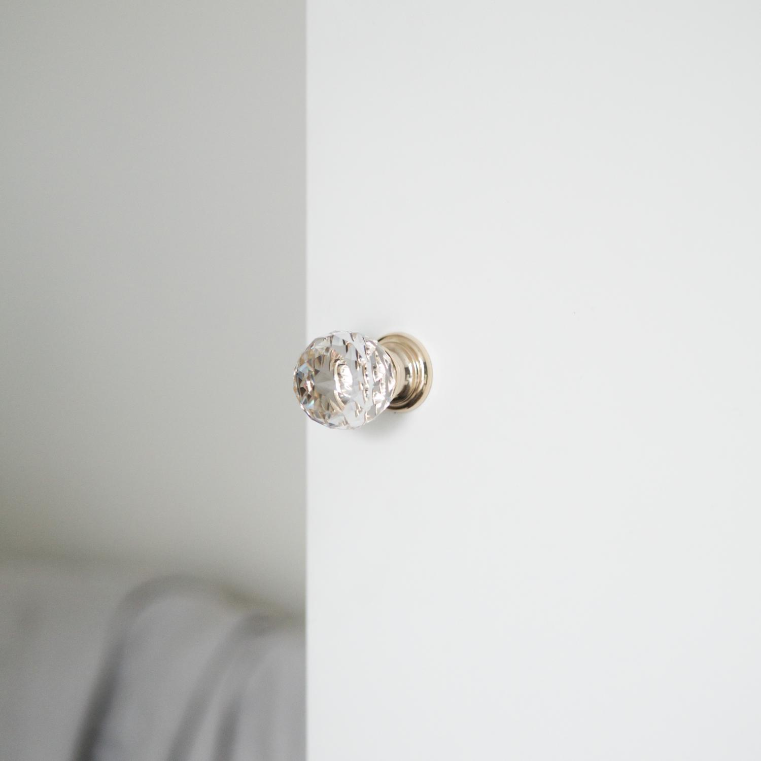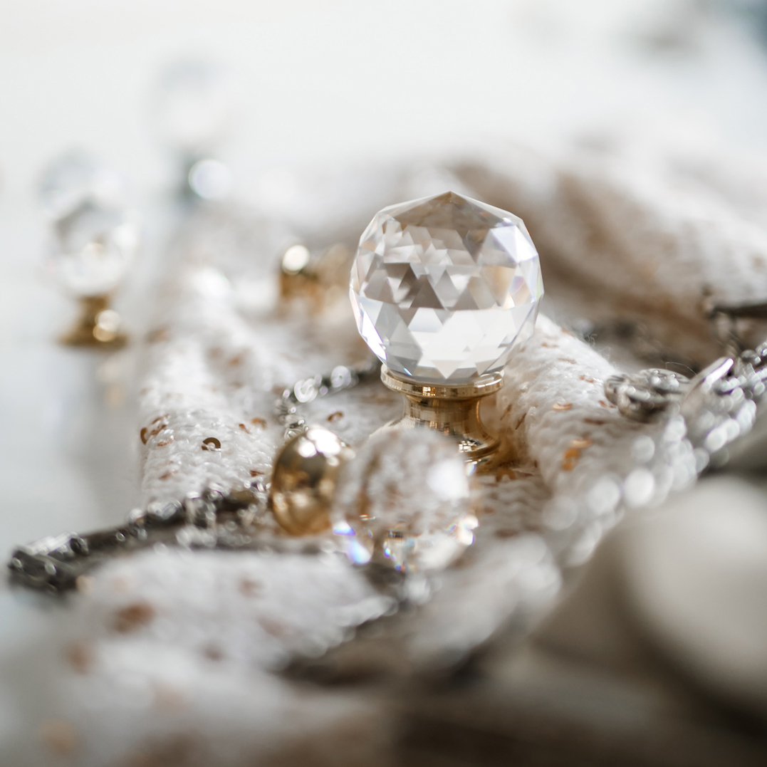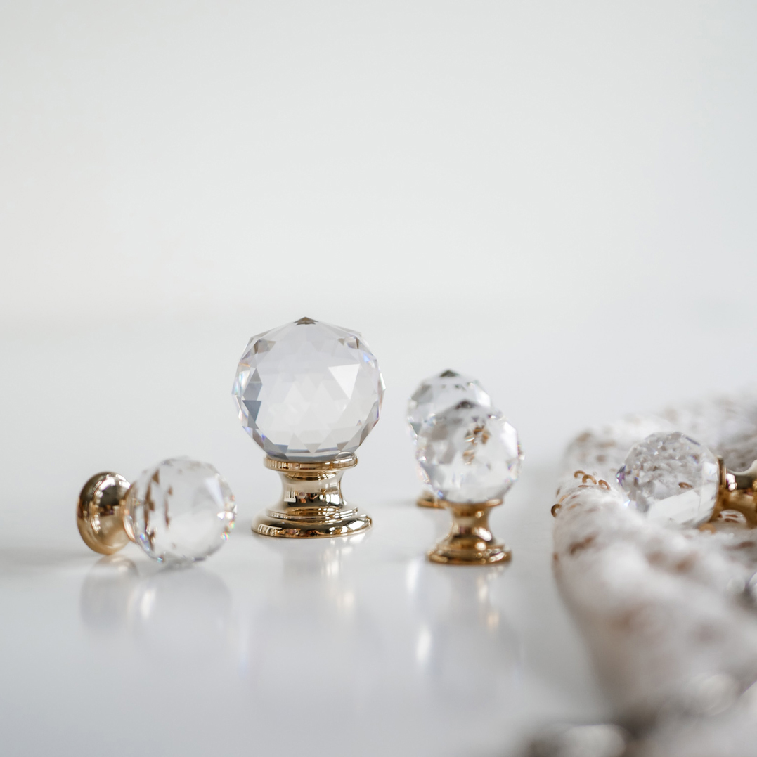 Oplev vores elegante krystalknop med guldbelægning – en fortryllende kombination af luksus og funktionalitet. Denne knop er designet med en smukt slebet krystal, der fanger og reflekterer lyset på en fantastisk måde, hvilket giver dine møbler en funklende detalje. Den guldbelagte base tilfører et strejf af glamour og sofistikering, perfekt til at løfte stilen i ethvert rum. Ideel til garderobeskabe, kommoder eller andre møbler, hvor du ønsker at skabe en luksuriøs og klassisk atmosfære. Med sin højkvalitetskonstruktion er denne krystalknop både holdbar og smuk, hvilket gør den til et fremragende valg for alle interiørentusiaster.