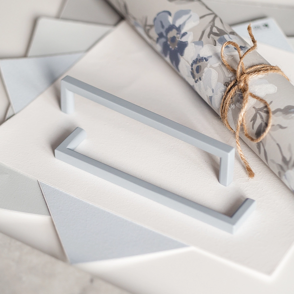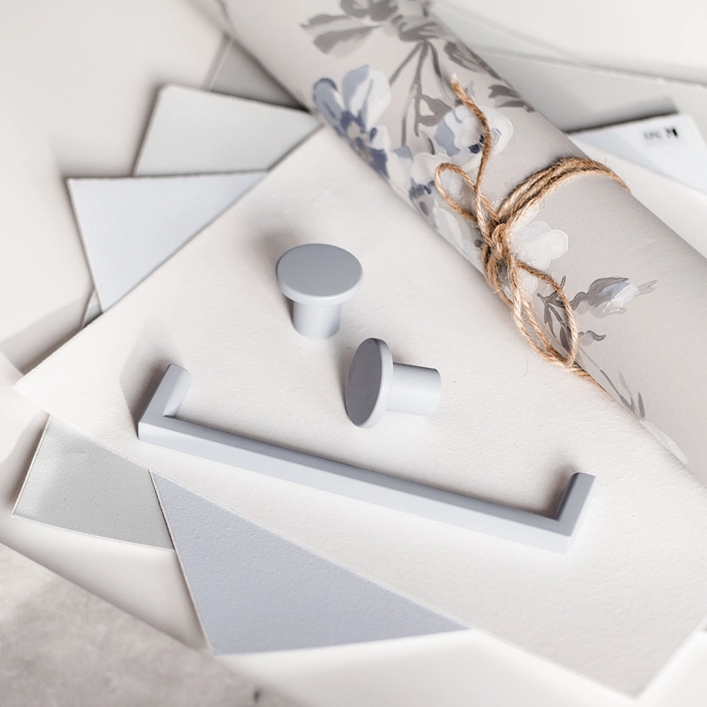 Køkkengreb Linfalk i en isblå nuance, der passer til køkken, kommode eller garderobe. Match med andre interiørdetaljer i samme NCS 3010-R90B.