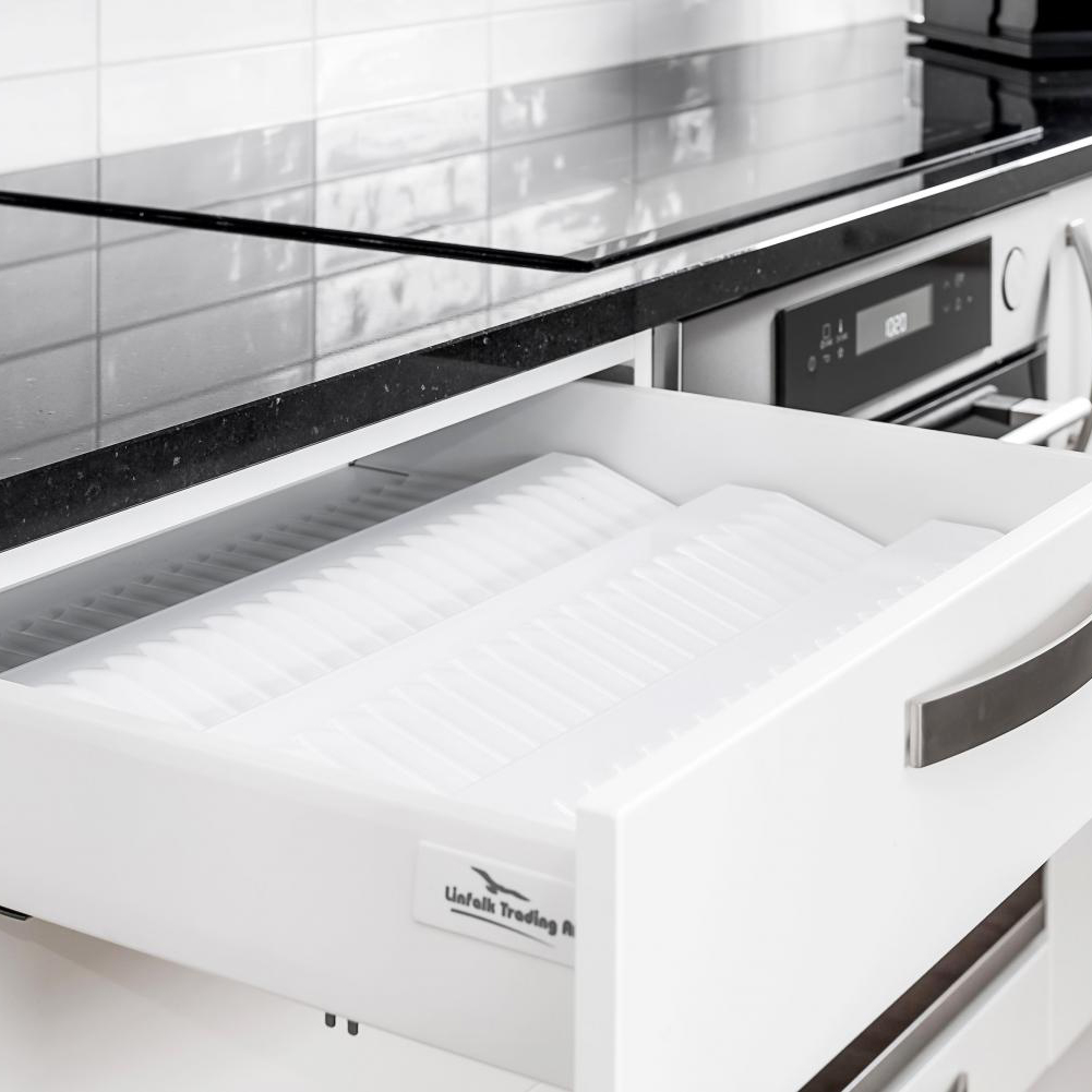 Skræddersyet krydderiboksindsats i plast, der holder orden blandt alle krydderierne i din krydderiskuffe. Med en indsats ligger boksene stille, og du får et hurtigt overblik uden at skulle lede hver gang du åbner skuffen.