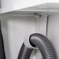 Smart opbevaringsboks til rengøringsskabet med holder til støvsugerslangen.