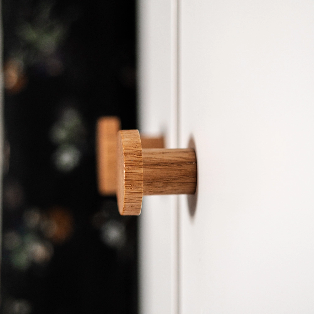 Yumi er en stilren og moderne trækugle, her i eg. Knotten har et godt greb på skabslågen eller skuffen, takket være sin klassiske form, og designet er moderne og passer til de fleste stilarter både i køkkenet og på badeværelset, men også gerne på en kommode eller skænk. Som træsort er eg meget hårdt og stærkt, hvilket gør det til et meget holdbart materiale at have i sin indretning i hjemmet.