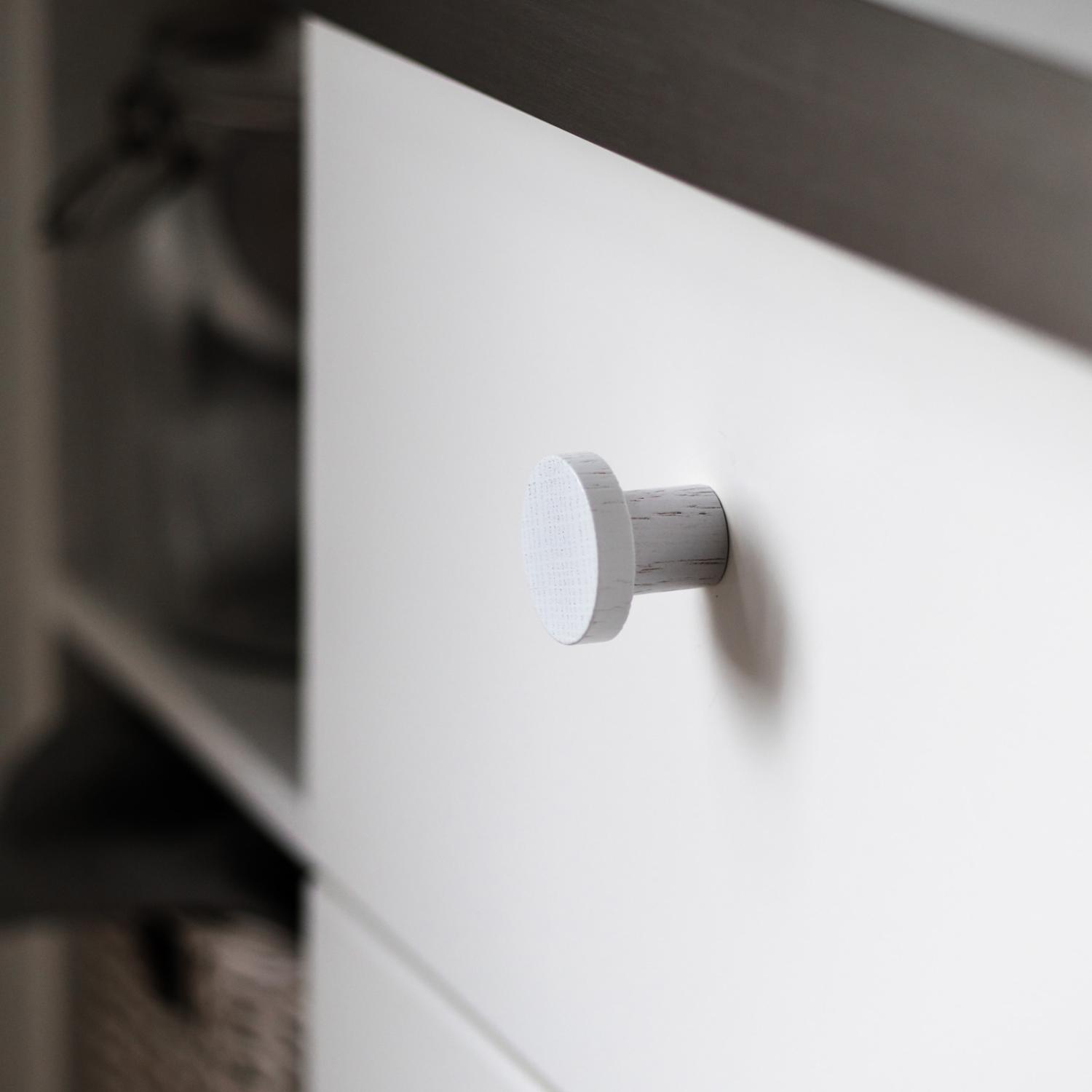 Yumi knager i træ har et rent og stilrent rundt design og er lavet af hvidbejdset eg. Kugle passer både i køkkenet, på garderober og på en kommode.